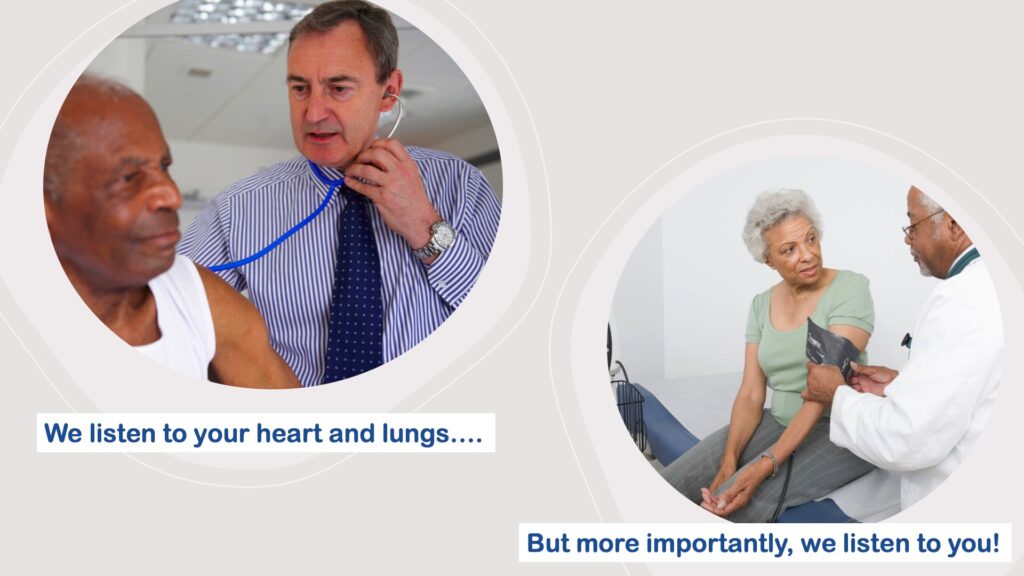 Medical care should be personalized and targeted. This means listening to you and hearing what you think, believe, and want. We offer shared decision-making starting with presenting you all the options. We will decide together on the best course of action: medical therapy, surgical therapy, alternative medicine, or reassurance with watchful monitoring. Importantly, you get the benefit of our decades of experience managing heart disease. Whether you’re 55 or 105, our tailored care will meet your needs and we will exceed your expectations.